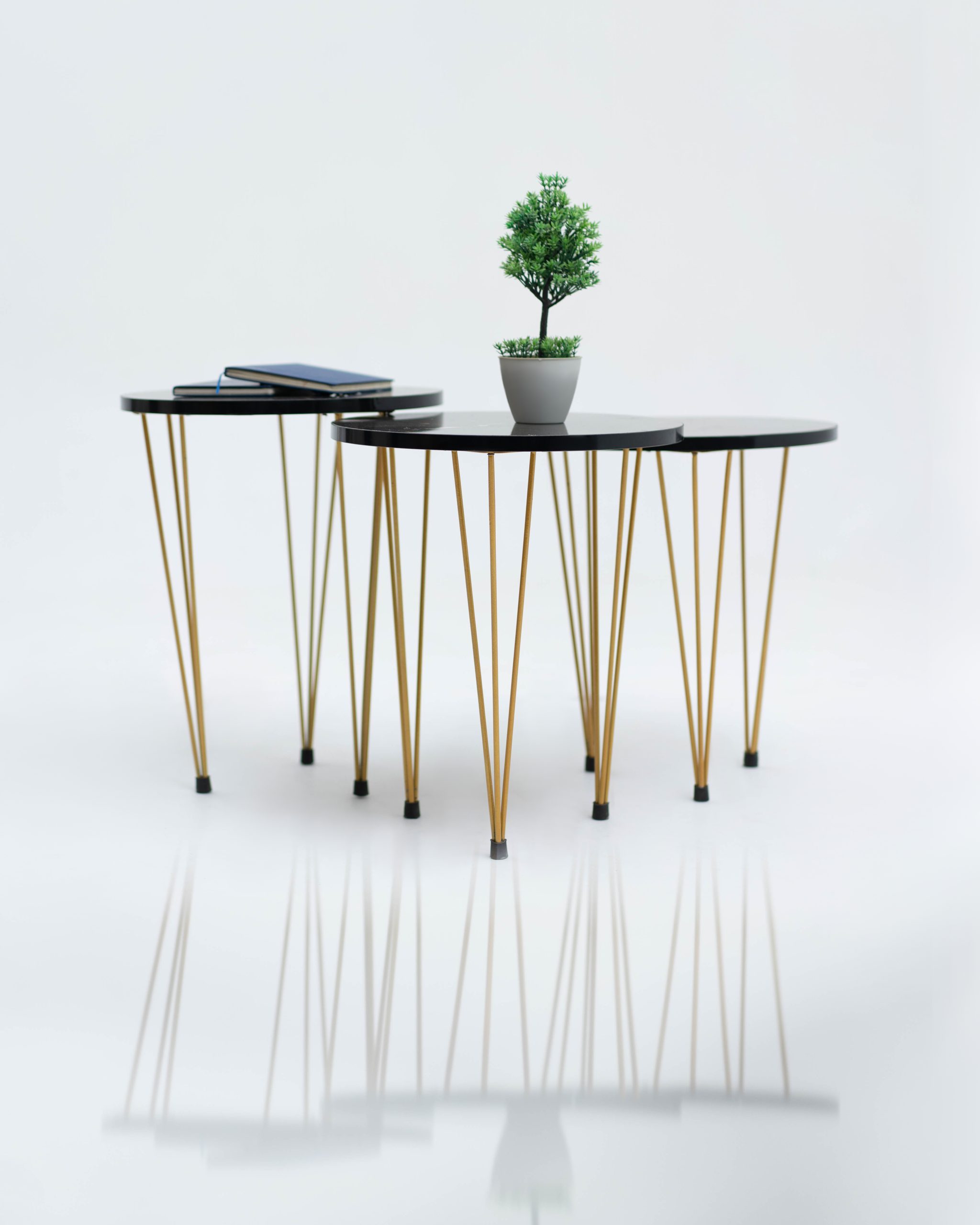 Elegant Gold and Black Nesting Tables - Minimalist Design for Any Space (PKR 250)