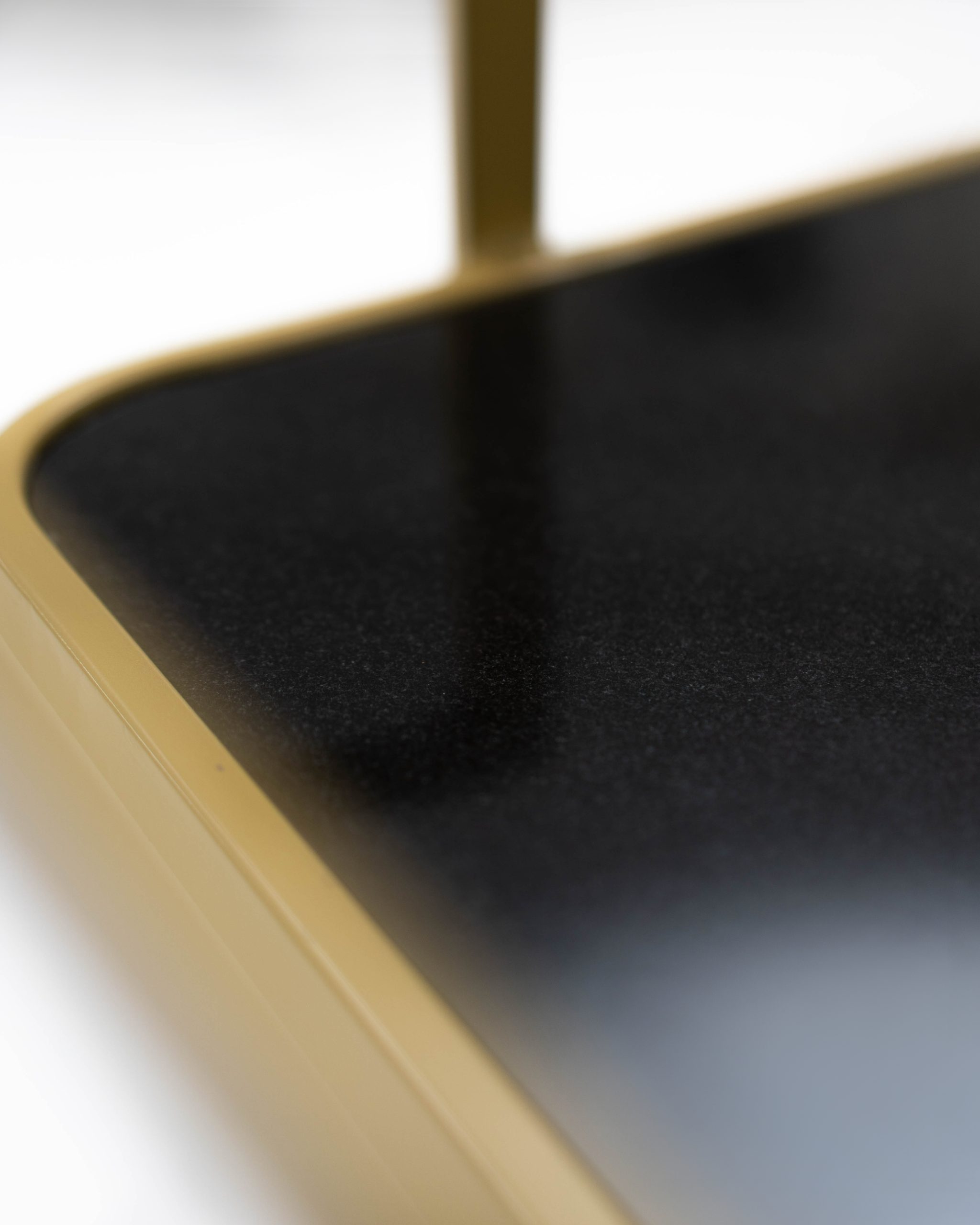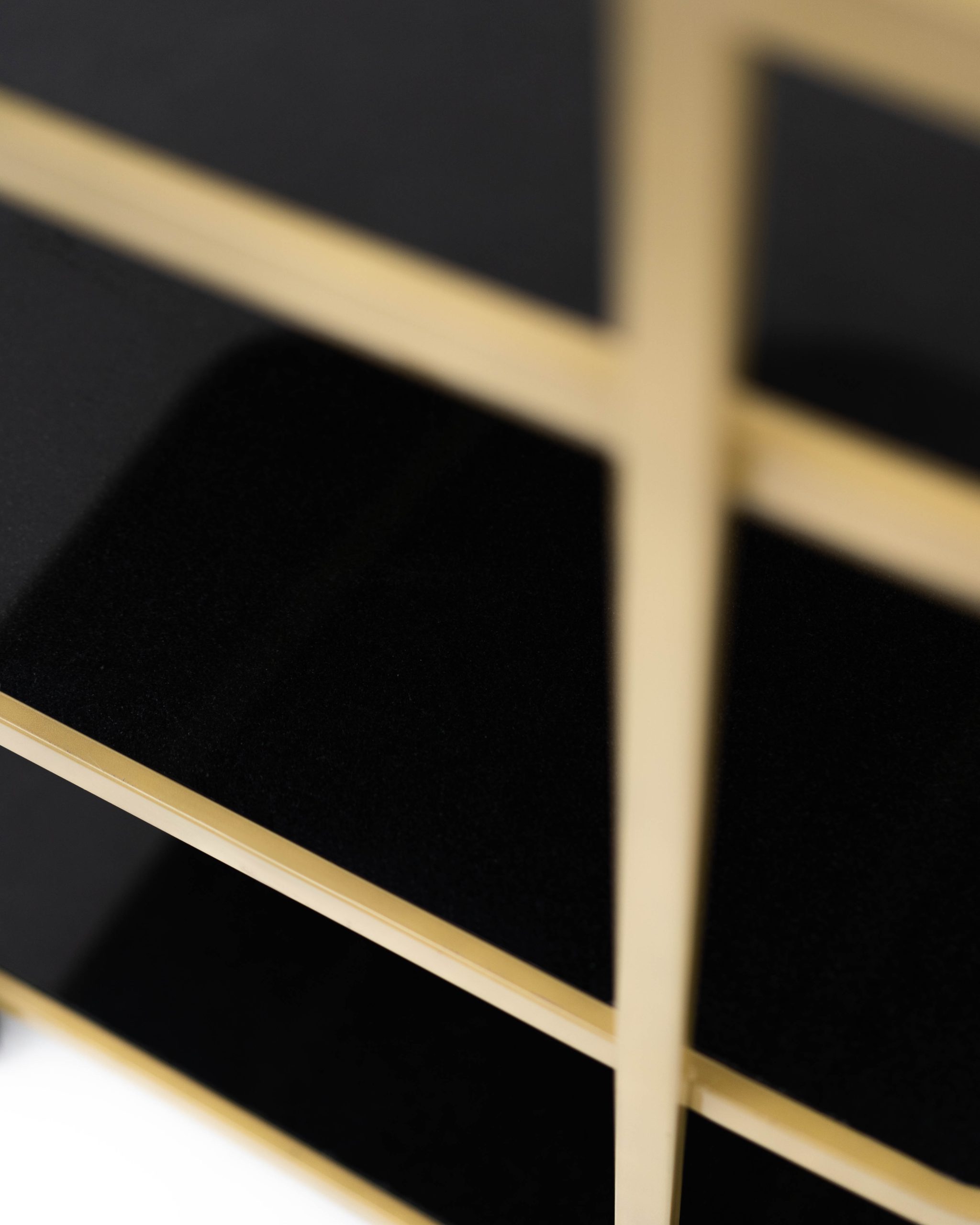 Stylish Gold Rolling Bar Cart with Black Glass Shelves (PKR 250)